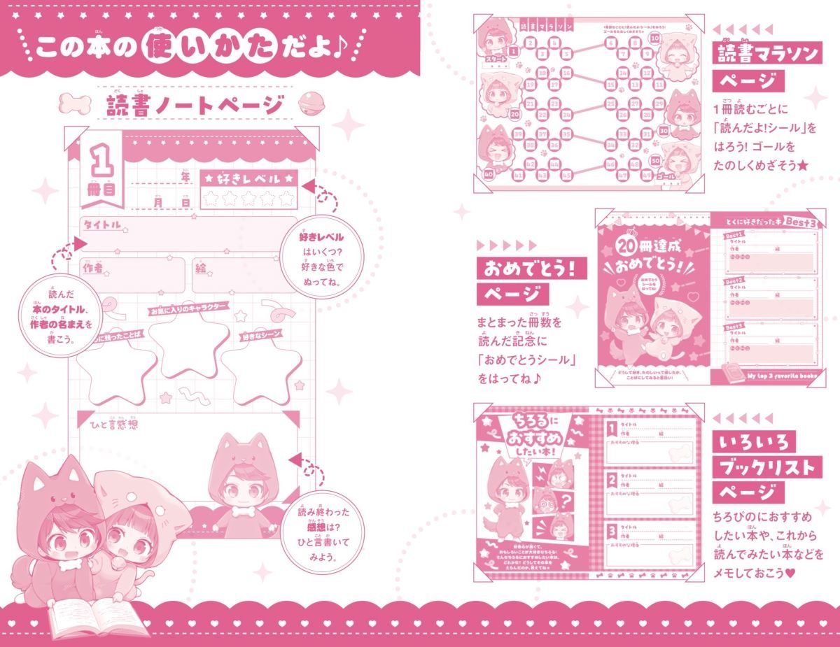 ★ちろぴのと一緒に読書をもっと楽しもう★巻頭にスペシャルシール付き♪ 50冊分の読書記録を書けるノートだよ!ちろるやぴのにキミのおすすめの本を紹介するページもあって超楽しい!ちろぴののにぎやか可愛いシールを貼って、毎日の読書をもっともっと楽しんじゃおう!