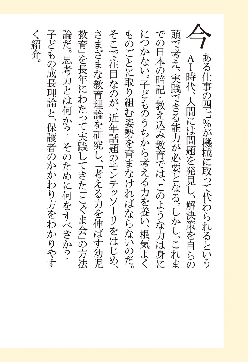 子どものうちから考える力を養い、根気よくものごとに取り組む姿勢を育まなければならないのだ。