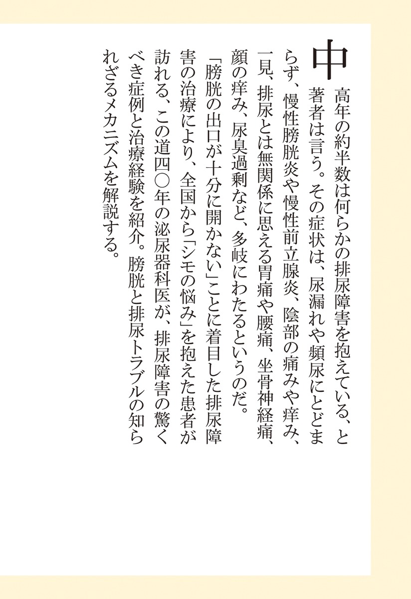 膀胱と排尿トラブルの知られざるメカニズムを解説した、排尿に違和感のあるすべての人に贈る一冊。