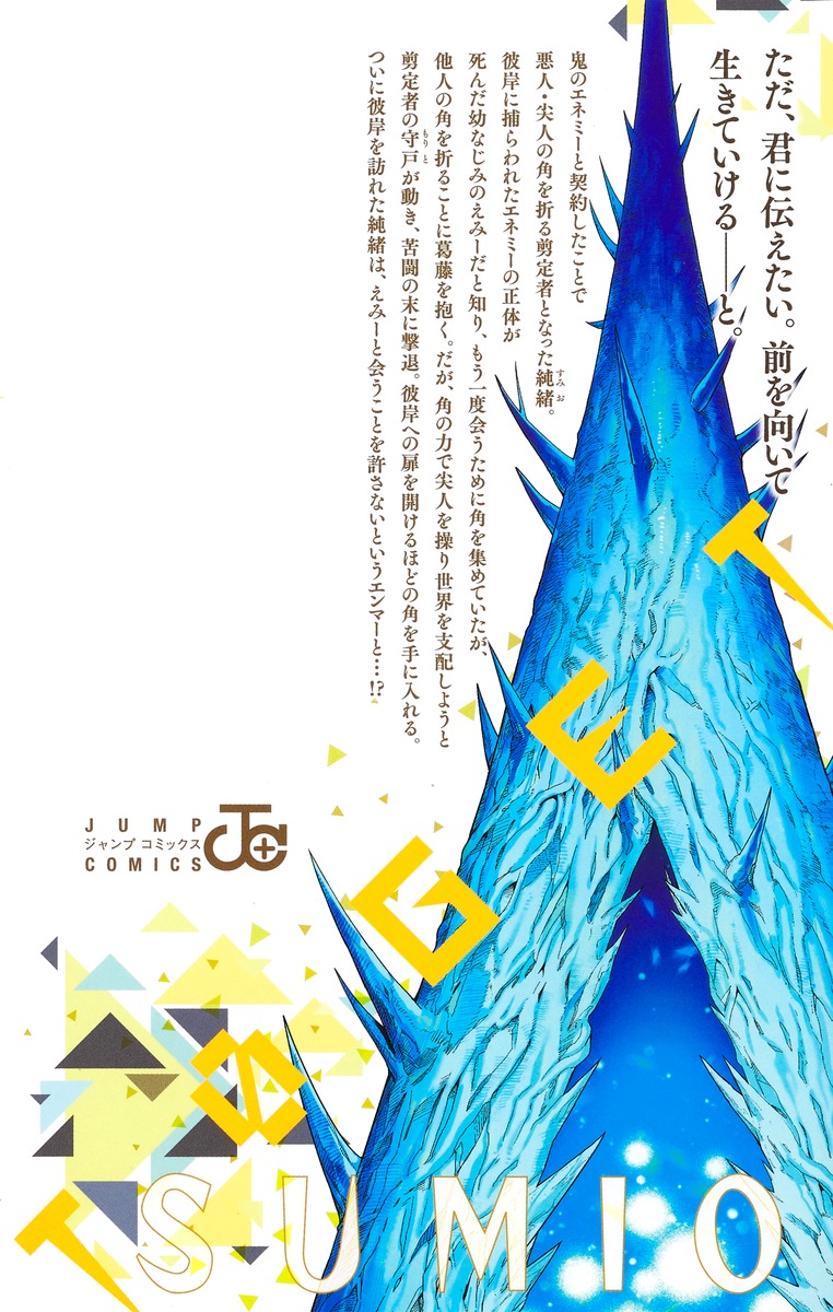 鬼のエネミーと契約したことで悪人・尖人の角を折る剪定者となった純緒。彼岸に捕らわれたエネミーの正体が死んだ幼なじみのえみーだと知り、もう一度会うために角を集めていたが、他人の角を折ることに葛藤を抱く。だが、角の力で尖人を操り世界を支配しようと剪定者の守戸が動き、苦闘の末に撃退。彼岸への扉を開けるほどの角を手に入れる。彼岸を訪れた純緒は、えみーと会うことを許さないというエンマーと…!?