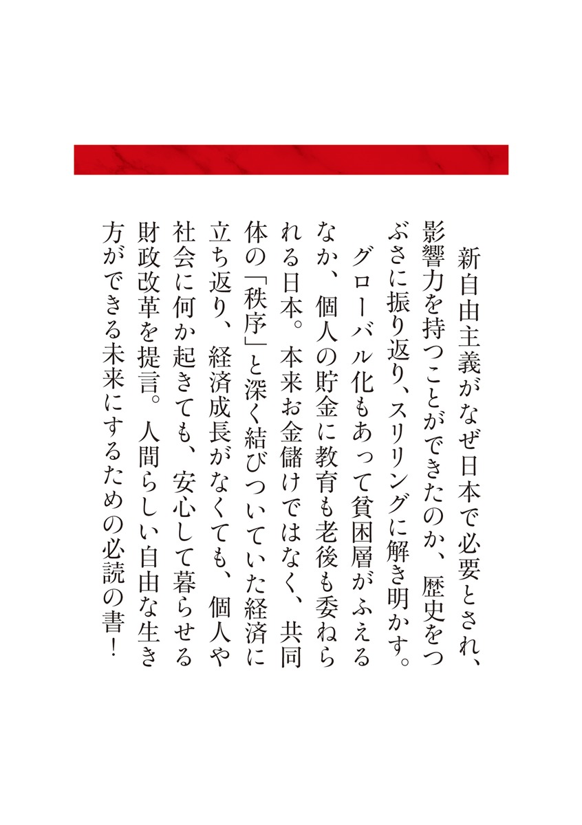 気鋭の財政社会学者・井手英策が、新自由主義がなぜ先進国で必要とされ、広がり、影響力を持つことができたのか、歴史をつぶさに振り返り、スリリングに解き明かしていく。